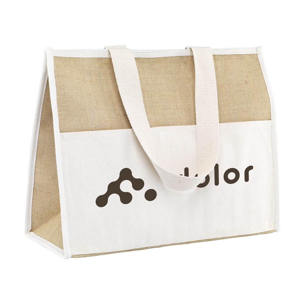 Royale shopper/koeltas met isolerende, aluminium binnenzijde en klittenbandsluiting. Ideaal voor het vervoeren van diepvriesproducten en ook geschikt om eten en drinken koel te houden tijdens een dagje weg. Met op elkaar afgestemde natuurlijke kleuren en een materiaalcombinatie van stevig jute en katoen. Lange, geweven hengsels. Het voorvak met klittenband biedt extra opbergruimte. Geschikt als boodschappentas, koeltas en strandtas. Inhoud ca. 28 liter.