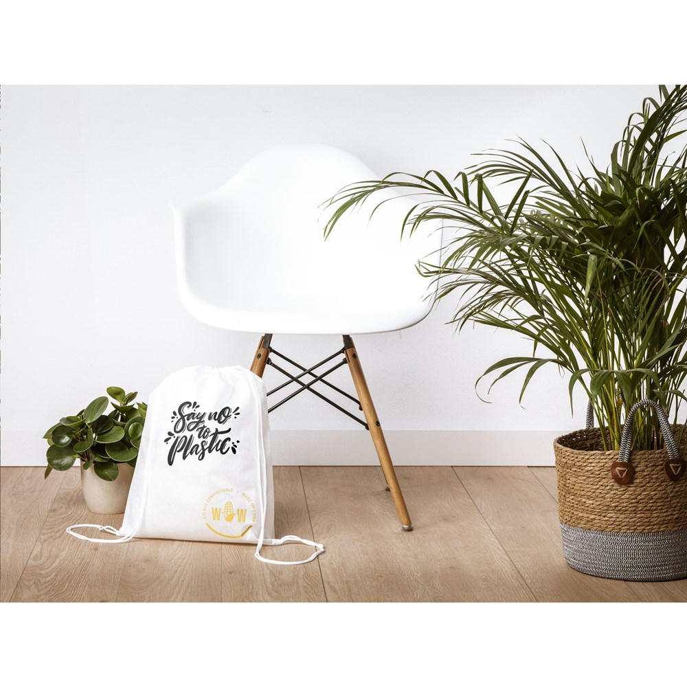 Rugzak gemaakt van maisafval, PLA materiaal van maïszetmeel. Met aanrijgkoorden. Inhoud ca. 8...meer