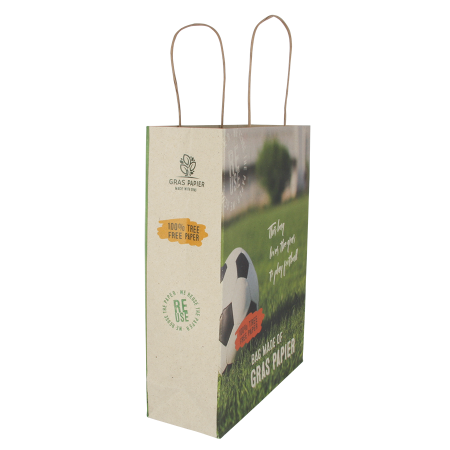 De duurzame draagtas van 50% boomvrij graspapier (120 gsm) met gedraaide hengsels en een formaat van 310×120×410 mm is de bewuste keuze voor uw verpakking.