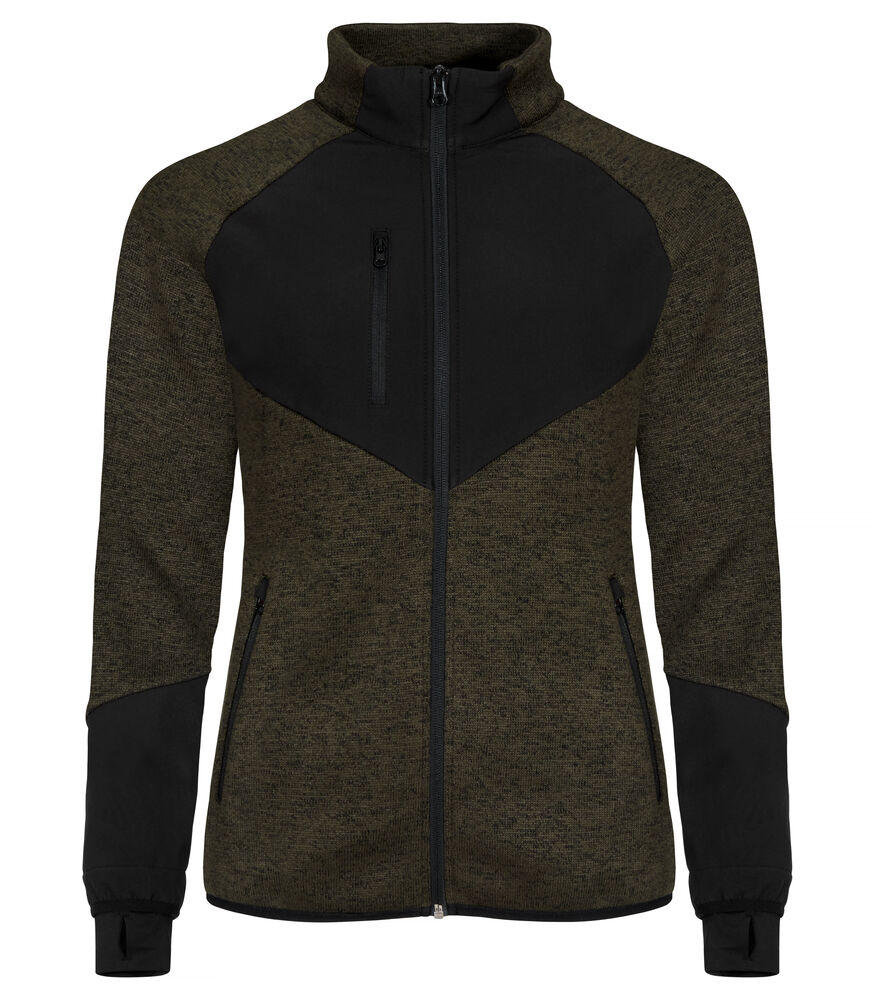 Een warm, gemakkelijk te dragen gebreid fleecejack met delen van softshell, drie zakken aan de buitenzijde met een ritssluiting en twee grote binnenzakken. De mouwen zijn afgewerkt met elastische manchetten met duimgaten en een opvouwbare reflecterende band. Voorzien van een eenvoudig te verwijderen label voor rebranding.