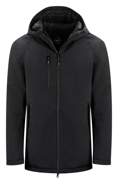Middellange winterjas. Buitenstof gebonden met fleece aan de binnenkant. Two-way waterdichte ritssluiting vooraan en aan de borstzak. Omgedraaide, nylon ritsen aan de zijzakken. Gewatteerde voering met binnenzak. Tricot geborstelde stof aan de binnenkant van de zakken voor warme handen op koude winterdagen.