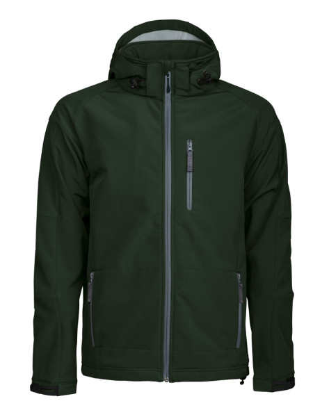 Softshell jas met contrasterende microfleece aan de binnenzijde. Wind- en waterbestendig (WP3000/MVP2000), afritsbare capuchon en manchetten verstelbaar met velcro. Elastisch trekkoord met stopper aan de capuchon en onderaan de zoom. Eén borstzak, twee zijzakken en één binnenzak.