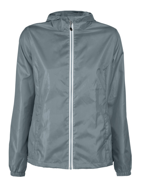 Windbreaker met capuchon voor dames in een waterafstotend materiaal aan de buitenzijde en een warme voering aan de binnenzijde. Contrasterende YKK ritssluiting.