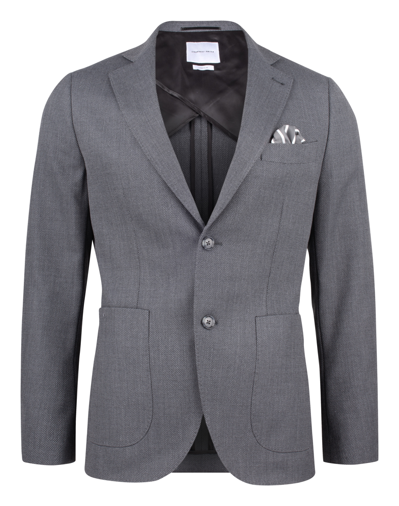 Our modern stretch Club blazer is made with super soft shoulders, a tailored waist and half lined butterfly interior. It features generous a notch lapel, patch side pockets, welt chest pocket and double vents in back. The fabric construction has a fairly rough