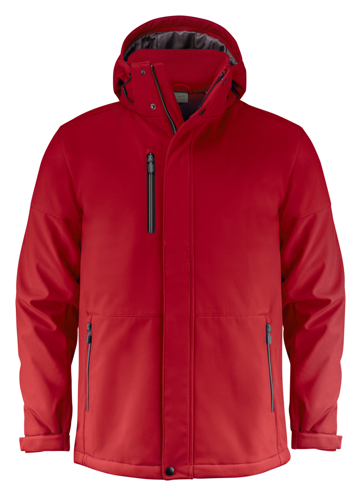 Gevoerde softshell jas met afneembare capuchon en stormflap met drukknopen. Aanpasbare mouwen met velcrosluiting en trekkoorden aan de capuchon en de zoom. 2 binnenzakken met ritssluitingen. Reflecterende piping op de rug. Uitscheurbaar neklabel en afzonderlijk geweven maatlabel. Aan de binnenzijde van de linkerzijnaad werd een zakje voorzien voor het innaaien van een waschip. De zippullers kunnen indien gewenst vervangen worden door één van de andere beschikbare kleuren. Oeko-Tex 100 gecertificeerd.