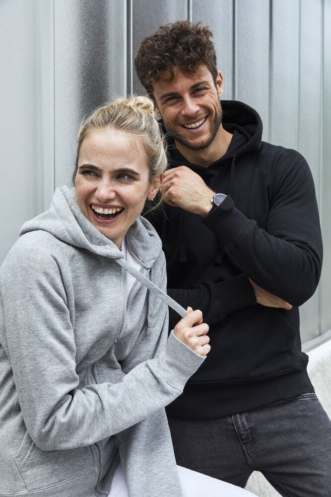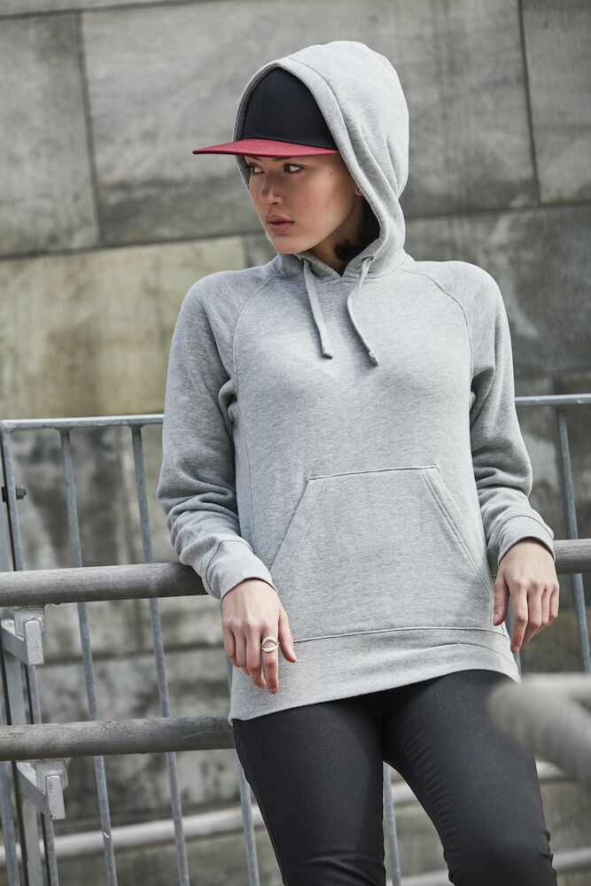 Moderne trui met capuchon en raglan mouwen voor een eigentijdse uitstraling. De trui is voorzien van rib in de zijpanelen en boorden. Verder heeft de trui een buidelzak, handige oplossing voor een koptelefoon en een verborgen zak. De trui is professioneel afgewerkt met visgraat necktape en metalen oog voor het trekkoord. De behandelingen met softener en enzymen zorgen ervoor dat de trui zacht en glad aanvoelt.