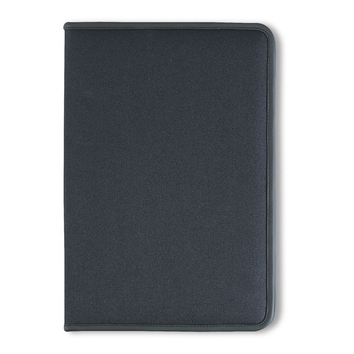 A4 schrijfmap met rits, 4 vakken en visitekaarthouder. Inclusief schrijfblok met 20 vel. 600D polyester en 210T lining.