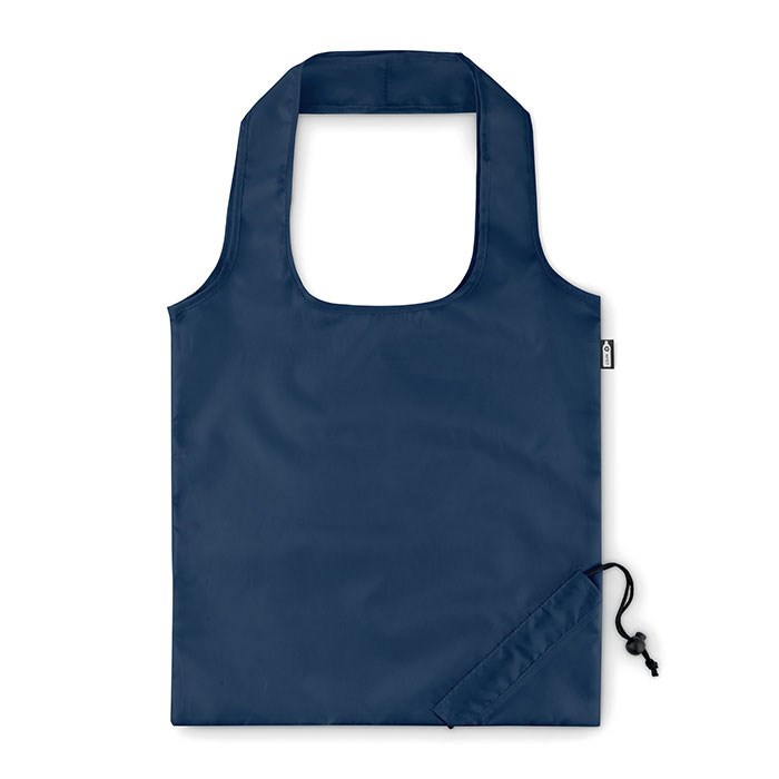 Opvouwbare boodschappentas van 190T RPET. Vouw de tas op in het hoekje van de tas en trek het koordje aan. Sublimatie bedrukking alleen geschikt op het witte item.