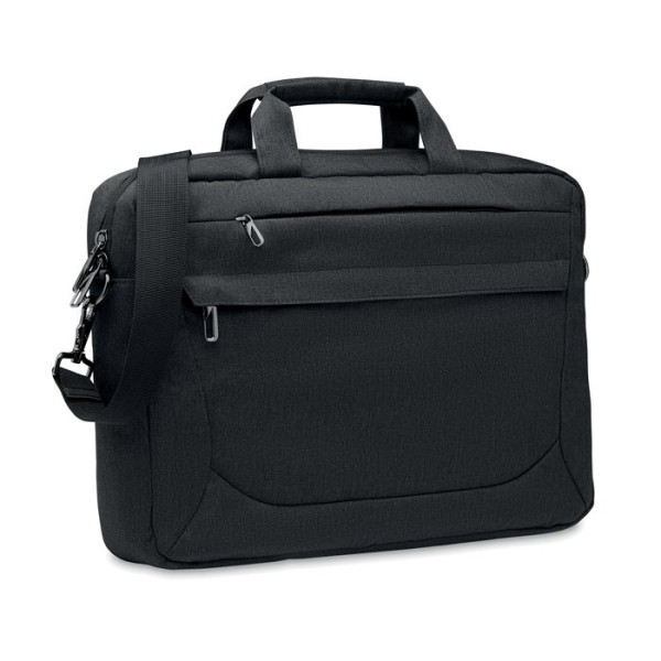 15 inch laptoptas van 600D RPET polyester. 2 interne hoofdvakken en groot voorvak met rits. Kleine zak met rits. Afneembare en verstelbare schouderbanden. Trolleyhouder op de achterkant.