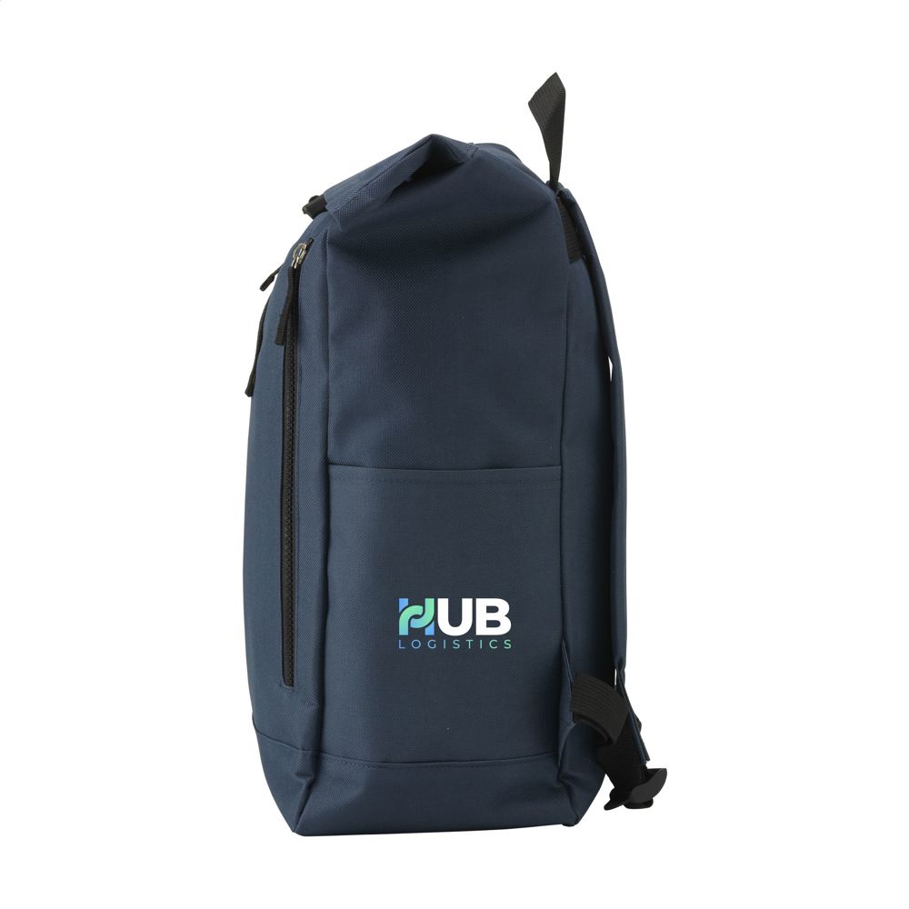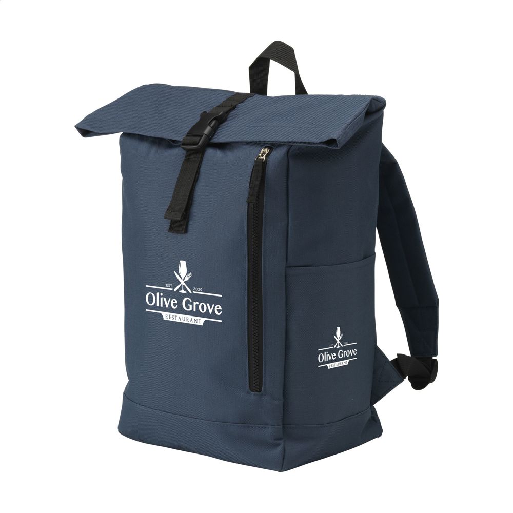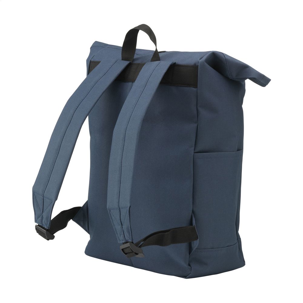 Stoere, praktische urban ‘roll-top’ rugzak van sterk 600D polyester met waterbestendige PVC binnenzijde, gedeeltelijk nylon gevoerd. De rugzak heeft één groot binnenvak, een insteekvak aan beide zijdes en een groot ritsvak aan de voorzijde. Met foam rugzijde voor meer draagcomfort, gewatteerde, en verstelbare schouderriemen. Met draaglus en een rolsluiting met kliksysteem aan de bovenzijde. De perfecte tas voor dagelijks gebruik. Inhoud ca. 18 liter.