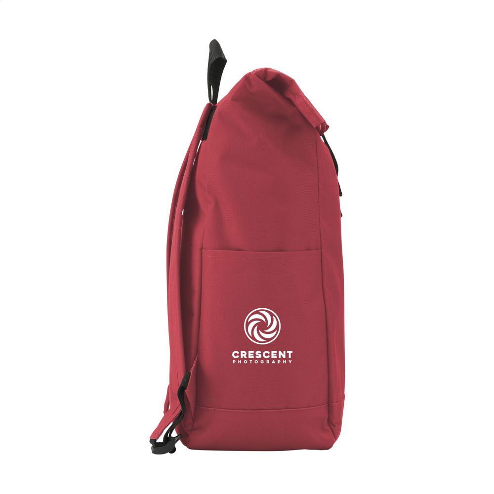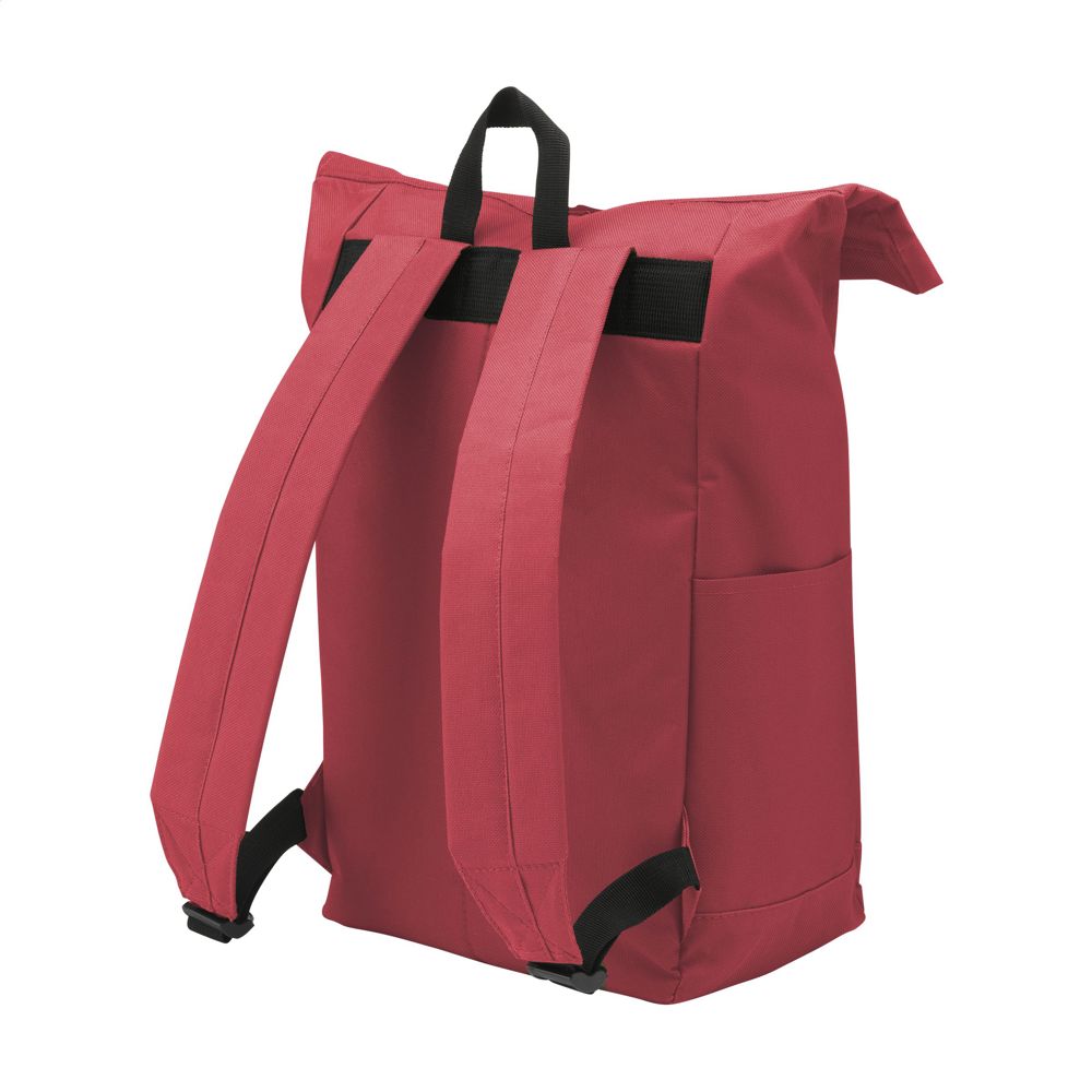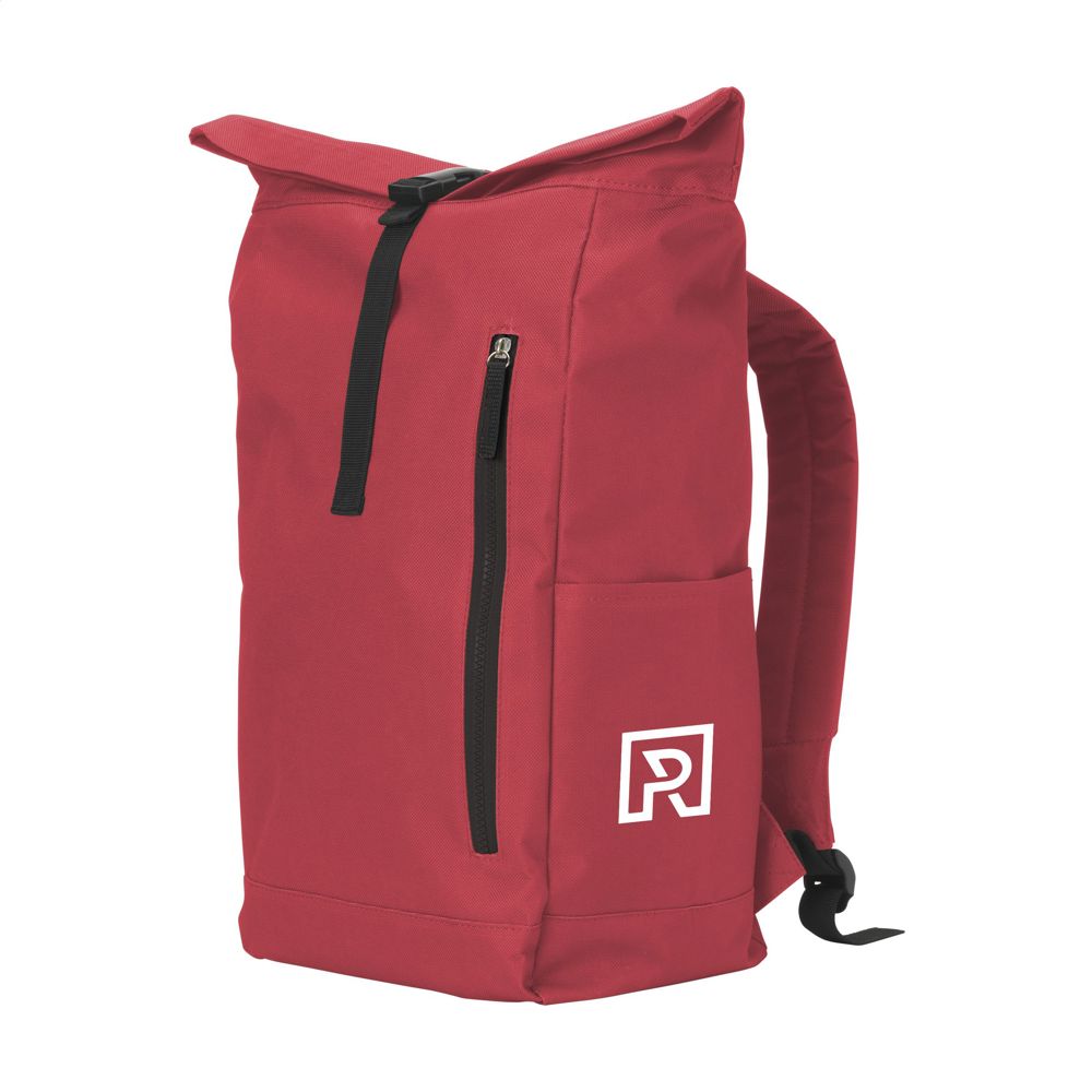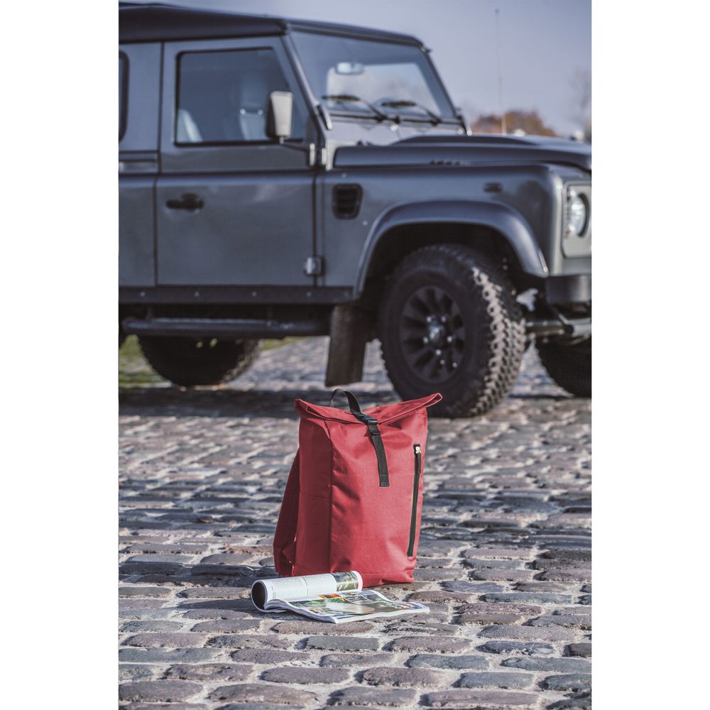 Stoere, praktische urban ‘roll-top’ rugzak van sterk 600D polyester met waterbestendige PVC binnenzijde, gedeeltelijk nylon gevoerd. De rugzak heeft één groot binnenvak, een insteekvak aan beide zijdes en een groot ritsvak aan de voorzijde. Met foam rugzijde voor meer draagcomfort, gewatteerde, en verstelbare schouderriemen. Met draaglus en een rolsluiting met kliksysteem aan de bovenzijde. De perfecte tas voor dagelijks gebruik. Inhoud ca. 18 liter.