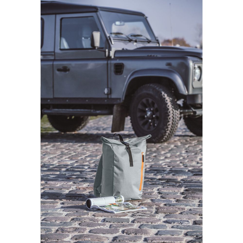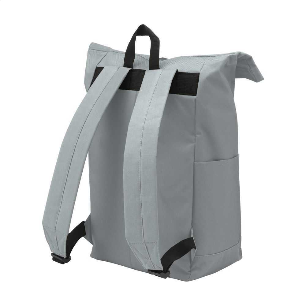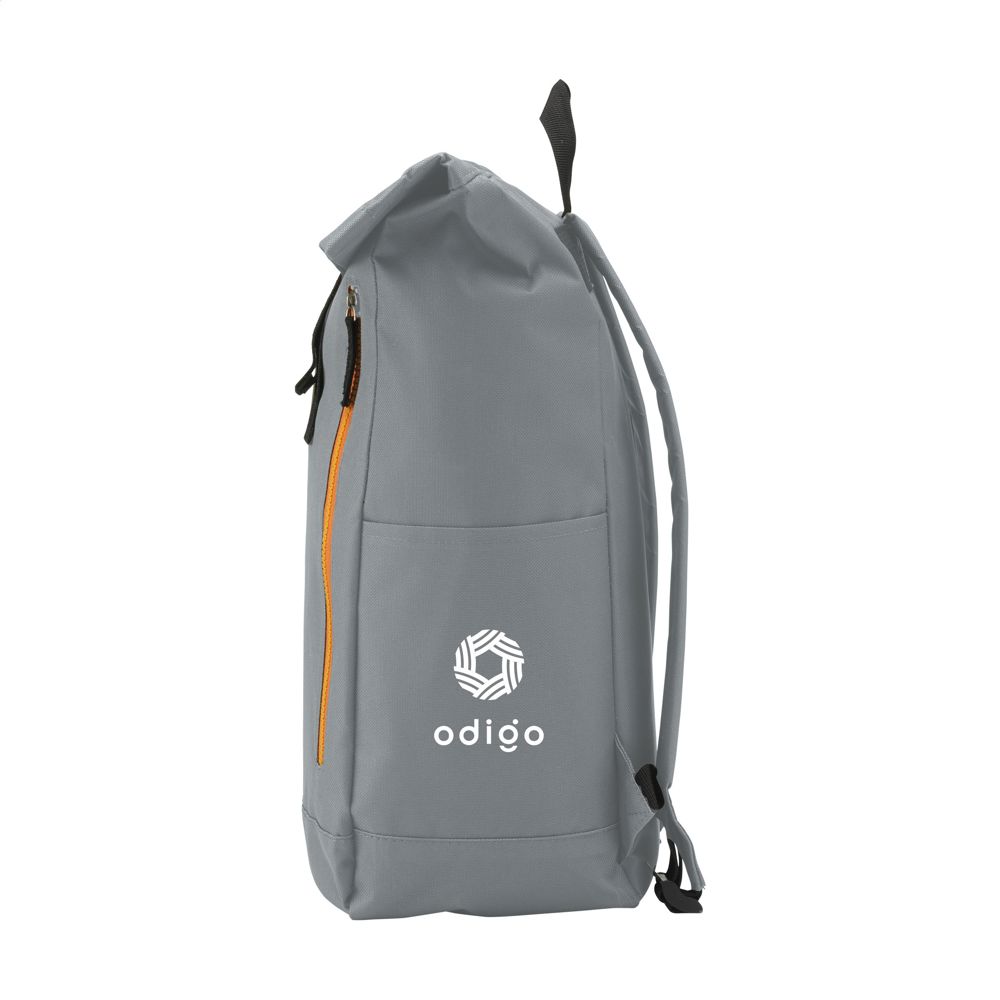 Stoere, praktische urban ‘roll-top’ rugzak van sterk 600D polyester met waterbestendige PVC binnenzijde, gedeeltelijk nylon gevoerd. De rugzak heeft één groot binnenvak, een insteekvak aan beide zijdes en een groot ritsvak aan de voorzijde. Met foam rugzijde voor meer draagcomfort, gewatteerde, en verstelbare schouderriemen. Met draaglus en een rolsluiting met kliksysteem aan de bovenzijde. De perfecte tas voor dagelijks gebruik. Inhoud ca. 18 liter.