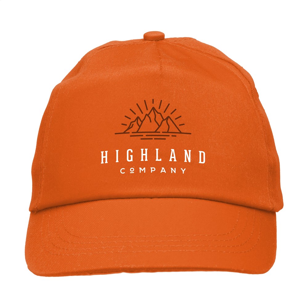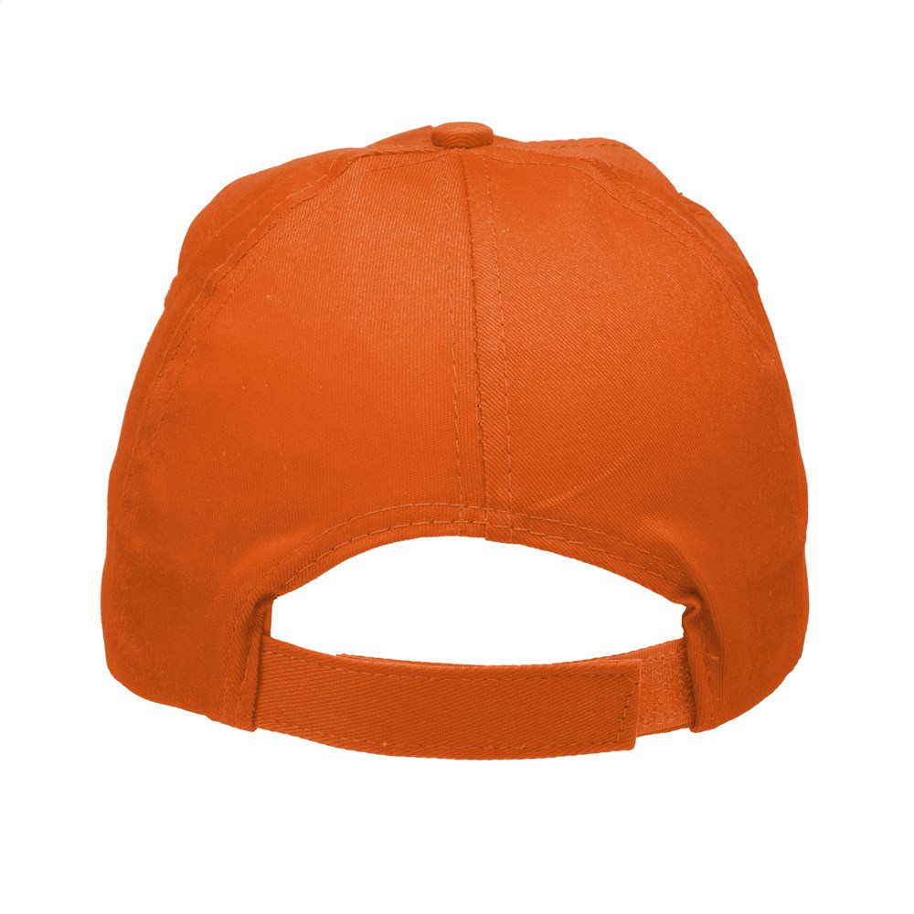 Baseballcap van 100% katoen met voorgevormde klep en klittenbandsluiting.