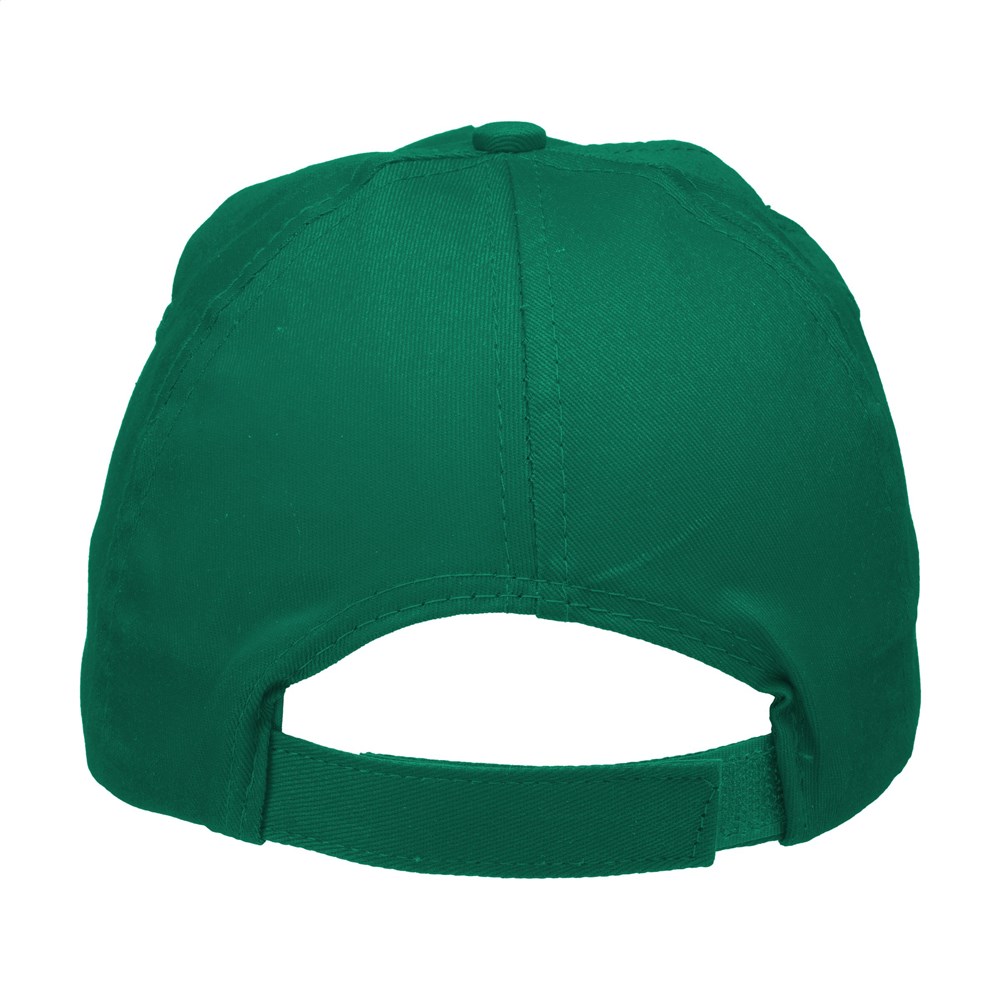 Baseballcap van 100% katoen met voorgevormde klep en klittenbandsluiting.