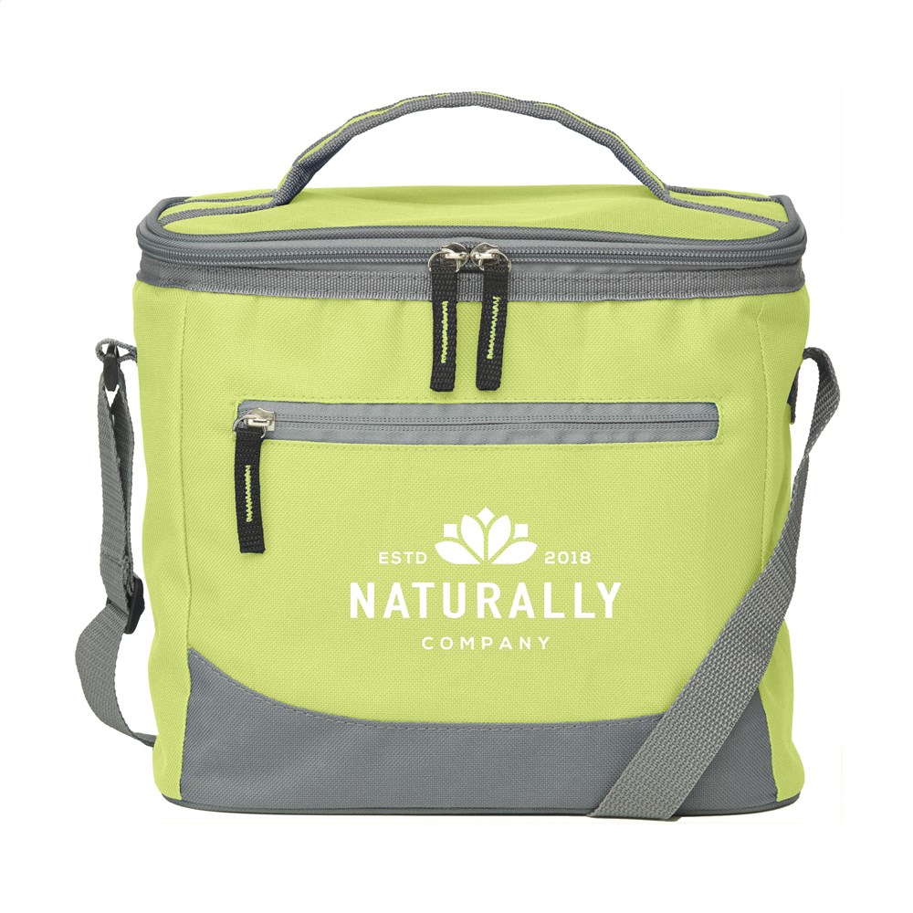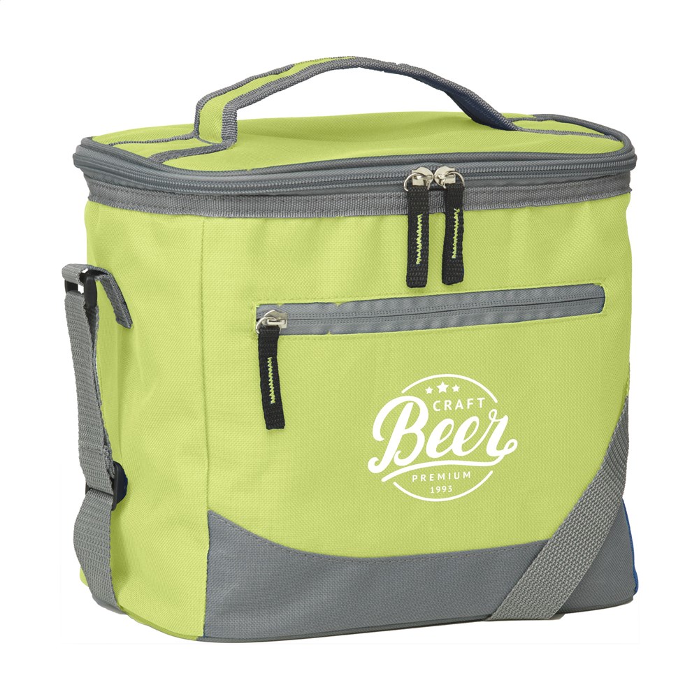 Handig formaat koeltas van geweven 600D polyester. Met ruim koelvak, ritsvak aan de voorzijde, handgreep en verstelbare schouderriem. Geschikt voor 12 blikjes drank. Inhoud ca 10 liter.