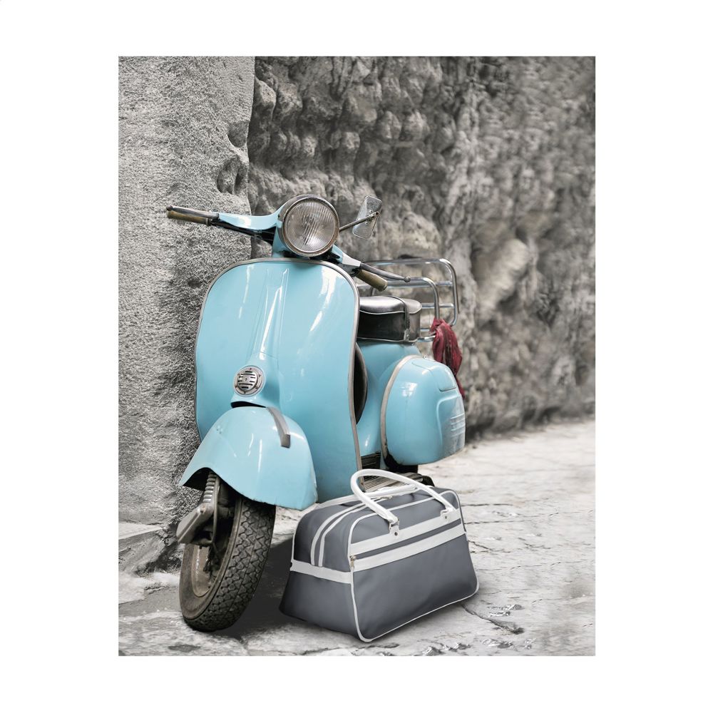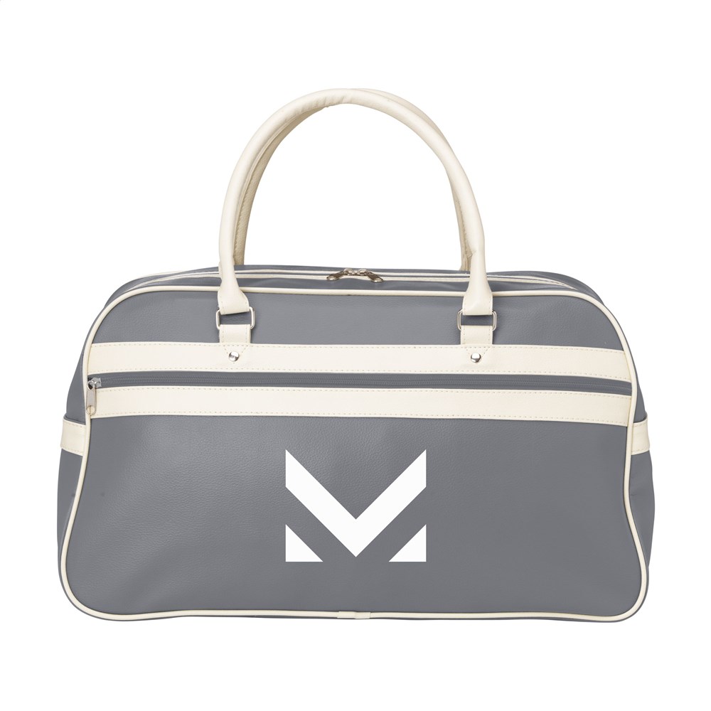 PVC/PU sporttas in jaren '70 look met gevoerde binnenzijde, hoofdvak en ritsvak, 2 stevige handgrepen, inlegbodem en beschermnoppen. Afgewerkt met hoogwaardige materialen die een lange levensduur garanderen. Inhoud ca. 21,5 liter.