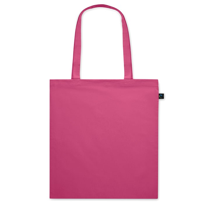 Boodschappentas van gekleurd Fairtrade katoen met lange hengsels. 140gr/m².