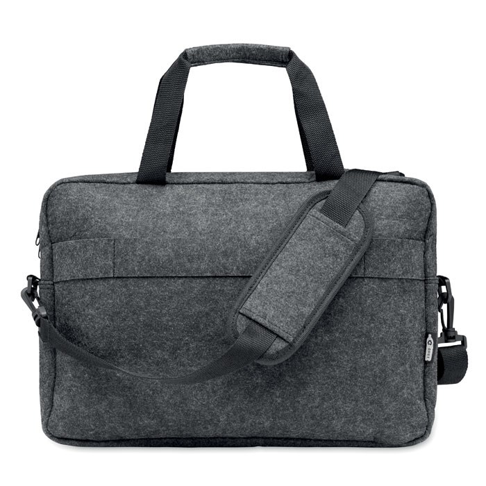 Laptoptas voor 15 inch laptop van RPET-vilt met één hoofdcompartiment en één voorvak met rits. Inclusief afneembare en verstelbare schouderriem. Trolleyhouder aan de achterzijde.