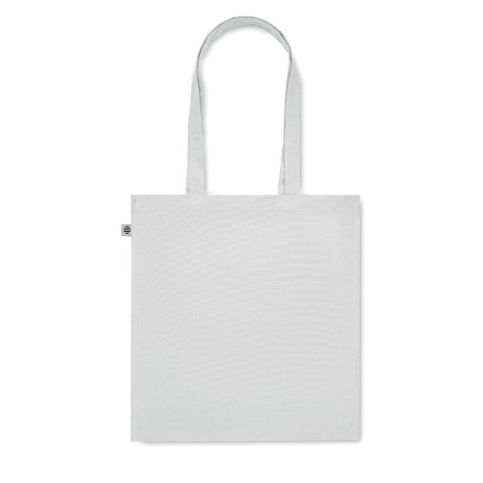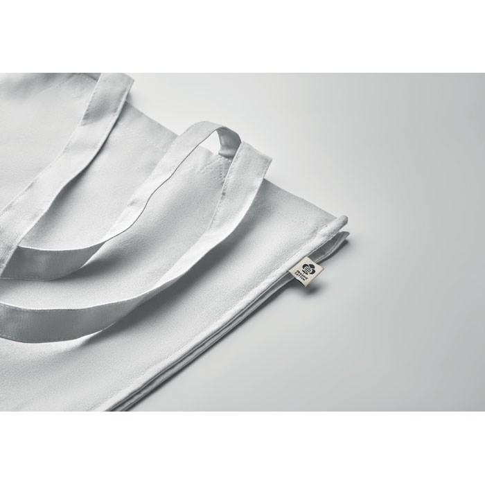 Boodschappentas van organisch katoen met lange hengsels en zijvouw. 220 gr/m².meer