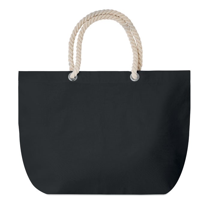 Strand-/ boodschappentas van katoen met touw hengsels. Gewicht: 220 g/m².meer