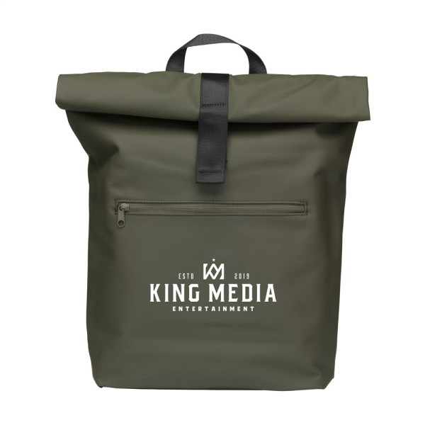 Praktische, stevige en royale ‘roll-top’ laptoprugzak met extra ritsvak aan de voorzijde. Deze rugzak heeft aan de bovenzijde niet alleen een handige rolsluiting met klittenband maar ook een ritssluiting. Deze rugzak is gemaakt van waterafstotend PU, 5% gerecycled PU en 42% gerecycled polyester. De rugzak heeft een keurig afgewerkte voering van gerecycled PET en is van alle gemakken voorzien. Het royale binnenvak heeft een speciaal laptopcompartiment voor het veilig vervoeren van een laptop (tot 15.6 inch) of tablet. Verder vind je aan de binnenzijde verschillende insteekvakken voor het georganiseerd opbergen van een mobiel, schrijfwaren of andere accessoires. Door gebruik te maken van de elastieke band aan de binnenzijde blijft een drinkfles rechtop op zijn plek staan. Met handige draaglus. Voor extra draagcomfort zijn de rugzijde en verstelbare schouderbanden voorzien van zacht foam. Deze rugzak is perfect voor dagelijks gebruik en neem je gemakkelijk mee naar school of naar je werk. RCS-gecertificeerd. Totaal gerecycled materiaal: 47%. Inhoud ca. 19 liter.