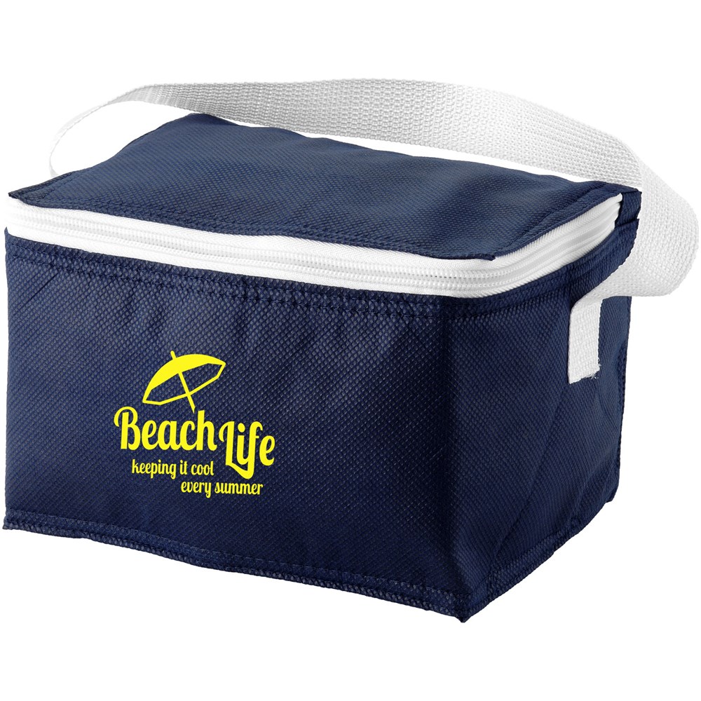 Deze compacte koeltas geeft ruimte voor 6 blikjes.