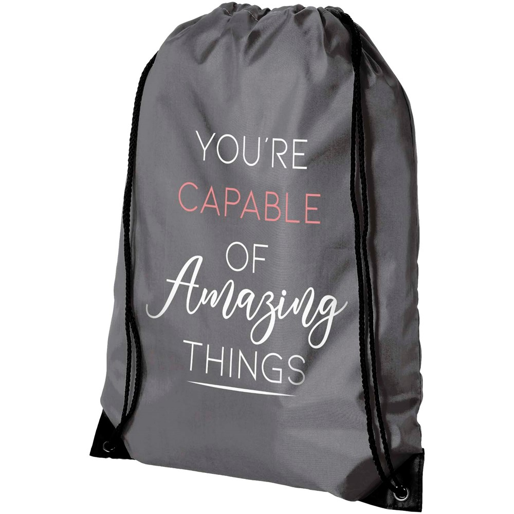 De Oriole rugzak is gemakkelijk uit te delen als geschenk om je merk of marketingcampagne te promoten. Deze lichtgewicht rugzak is budgetvriendelijk, gemakkelijk op de rug of op de schouder te dragen en biedt voldoende ruimte voor het toevoegen van een logo of andere boodschappen. Het trekkoord maakt het gemakkelijk te openen en te sluiten, en het 210D polyester materiaal is sterk en duurzaam.