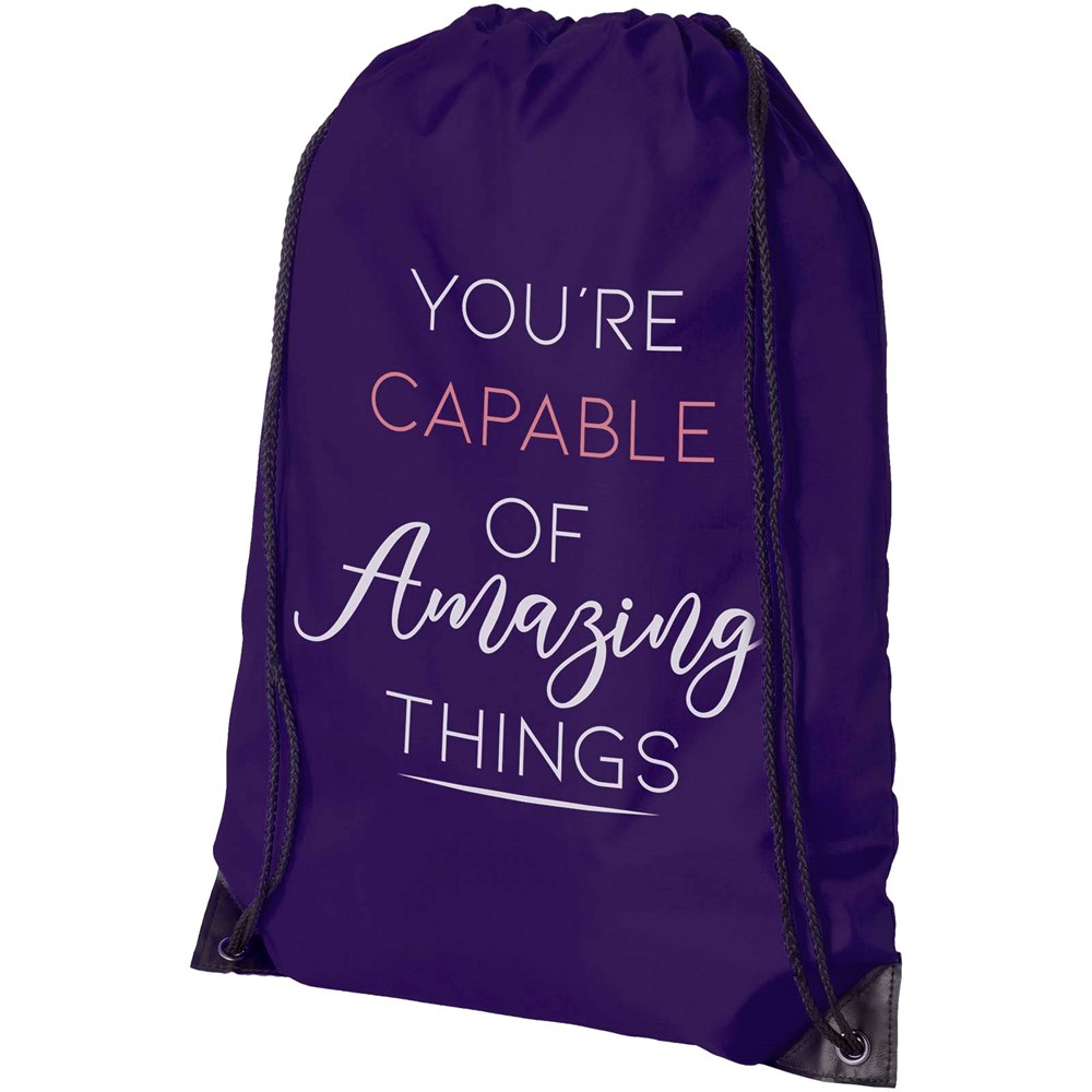 De Oriole rugzak is gemakkelijk uit te delen als geschenk om je merk of marketingcampagne te promoten. Deze lichtgewicht rugzak is budgetvriendelijk, gemakkelijk op de rug of op de schouder te dragen en biedt voldoende ruimte voor het toevoegen van een logo of andere boodschappen. Het trekkoord maakt het gemakkelijk te openen en te sluiten, en het 210D polyester materiaal is sterk en duurzaam.