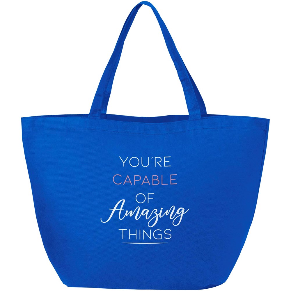 De Maryville draagtas is een goed alternatief voor de plastic tas voor eenmalig gebruik. Er blijft voldoende ruimte over voor het bedrukken van logo's of teksten, en de non-woven stof maakt de tote bag stevig voor een breed gebruik. De hengsels zijn 18 cm, wat betekent dat de draagtas gemakkelijk met de hand of over de schouder kan worden gedragen. In het grote hoofdvak kunnen gemakkelijk meerdere items worden opgeborgen. Kortom: de ideale tas voor boodschappen of een dagje naar het strand of park. Geschikt tot 10 kg gewicht.