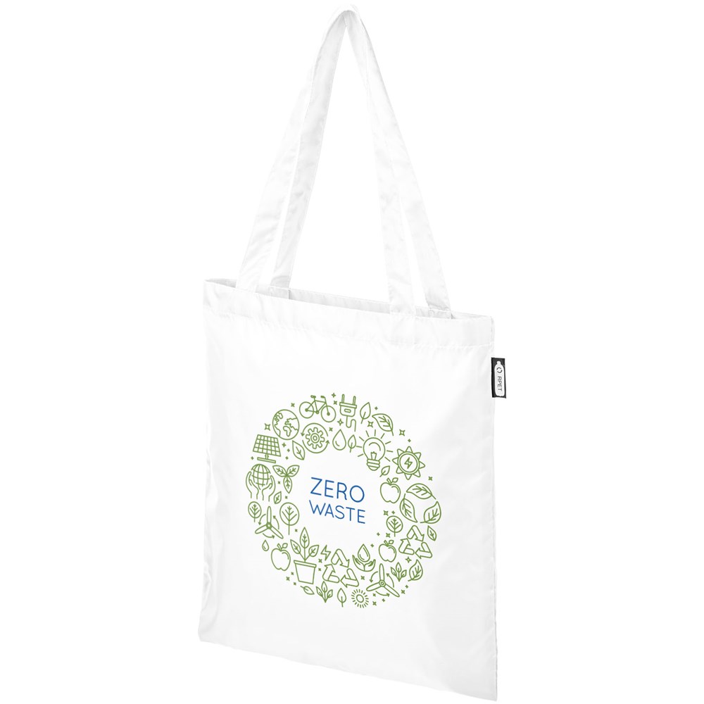 Duurzame tas, gemaakt van 100% gerecycled, van consumenten afkomstig kunststof dat bijdraagt aan de vermindering van kunststofafval. Voorzien van twee handgrepen met een lengte van 27 cm. Geschikt tot 5 kg gewicht.