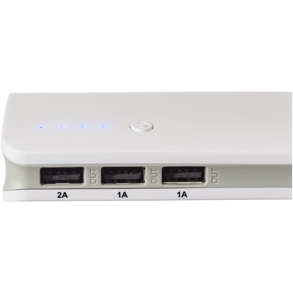 De Spare powerbank heeft een krachtige capactiteit van 10000 mAh en is voorzien van licht voor als je de lader 's nachts of op donkere plekken wilt gebruiken. Je kan er drie apparaten tegelijkertijd mee opladen, met een maximale output van 5V/2.1A (uitgang 1: 5V/1A, uitgang 2: 5V/1A en uitgang 3: 5V/2.1A). De vier blauwe LED-lampjes laten zien hoeveel energie de lader nog heeft. Compleet met USB-micro-USB oplaadkabel. Geleverd in een witte Avenue geschenkverpakking.