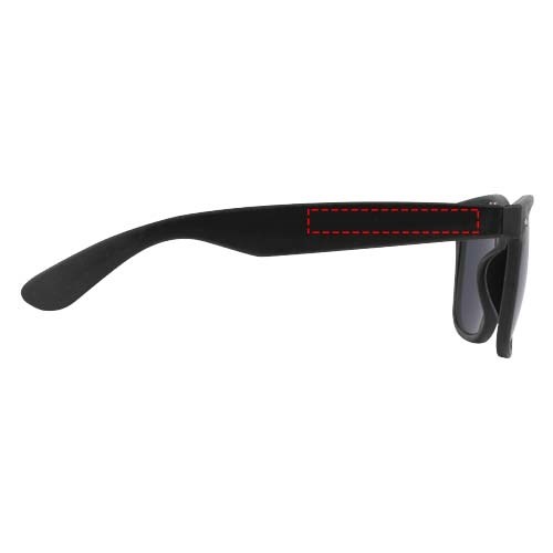Deze duurzame zonnebril met retro-ontwerp is het ideale relatiegeschenk tijdens zomerfestivals, evenementen of andere zonnige buitenactiviteiten. De zonnebril is licht van gewicht en comfortabel om te dragen en is gemaakt van gerecycled plastic voor een duurzamere keuze. Deze bril voldoet aan EN ISO 12312-1 en heeft UV400-glazen die zijn geclassificeerd als categorie 3, waardoor het de perfecte keuze is voor bescherming tegen fel zonlicht.