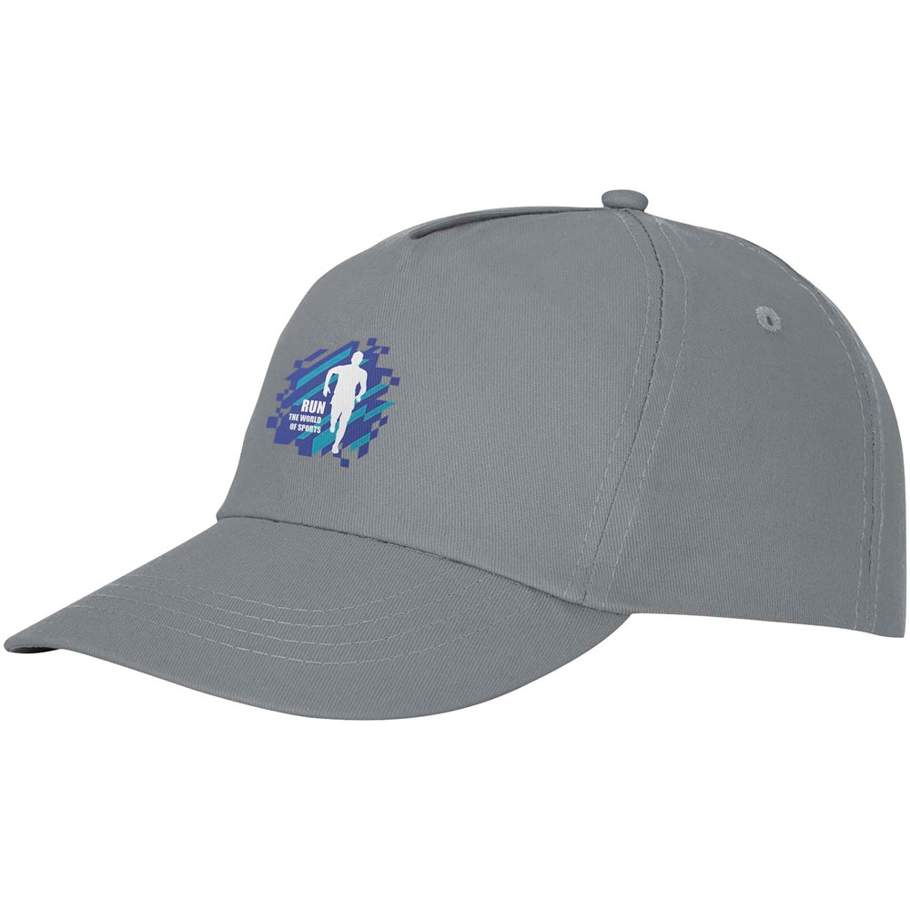 De Feniks 5-panelen pet heeft geborduurde oogjes voor verbeterde ventilatie, zodat je koel en fris blijft tijdens elke activiteit. Met een hoofdomtrek van 58 cm biedt hij een comfortabele pasvorm voor verschillende hoofdmaten. De stoffen klittenbandsluiting kan moeiteloos worden versteld voor de perfecte pasvorm. De Feniks pet is gemaakt van 175 g/m² katoenen keperstof en combineert duurzaamheid met een zacht, ademend gevoel.