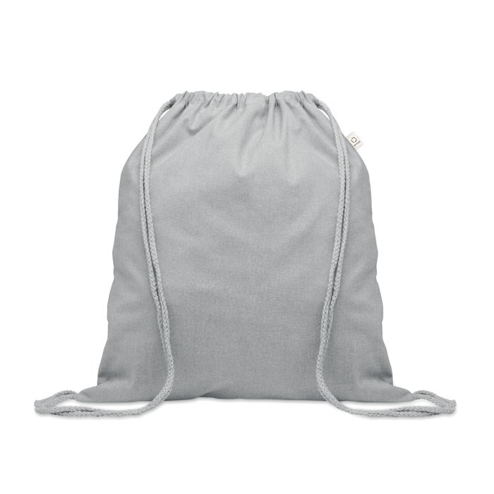 Gerecycled trekkoord rugzak van pre-consumer katoen (70% gerecycled katoen en 30% RPET) met lange hengsels. 140 gr/m². Dit artikel kan krimpen na het afdrukken.