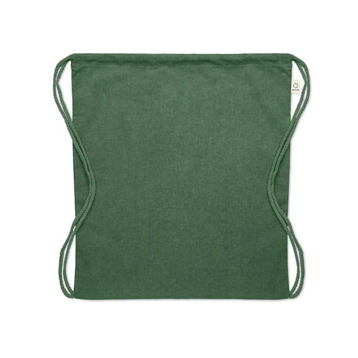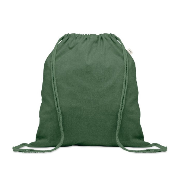 Gerecycled trekkoord rugzak van pre-consumer katoen (70% gerecycled katoen en 30% RPET) met lange hengsels. 140 gr/m². Dit artikel kan krimpen na het afdrukken.
