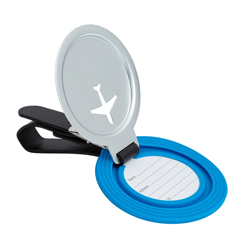 Dit REFLECTS® ontwerp is een onmisbare metgezel tijdens elke reis. De bagagelabel valt op door het moderne ontwerp en trendy kleuren, van subtiel zwart-zwart tot levendig rood-zilver. De aluminium plaat heeft een gestanst vliegtuigmotief aan de voorkant en past veilig in het omringende silicone. Tussen de siliconen cover en de aluminium plaat zit een papieren inlegvel voor naam, adres en telefoonnummer, waardoor persoonlijke gegevens verborgen blijven. De kunstleren band met metalen gesp zorgt voor een veilige bevestiging aan koffers of rugzakken.