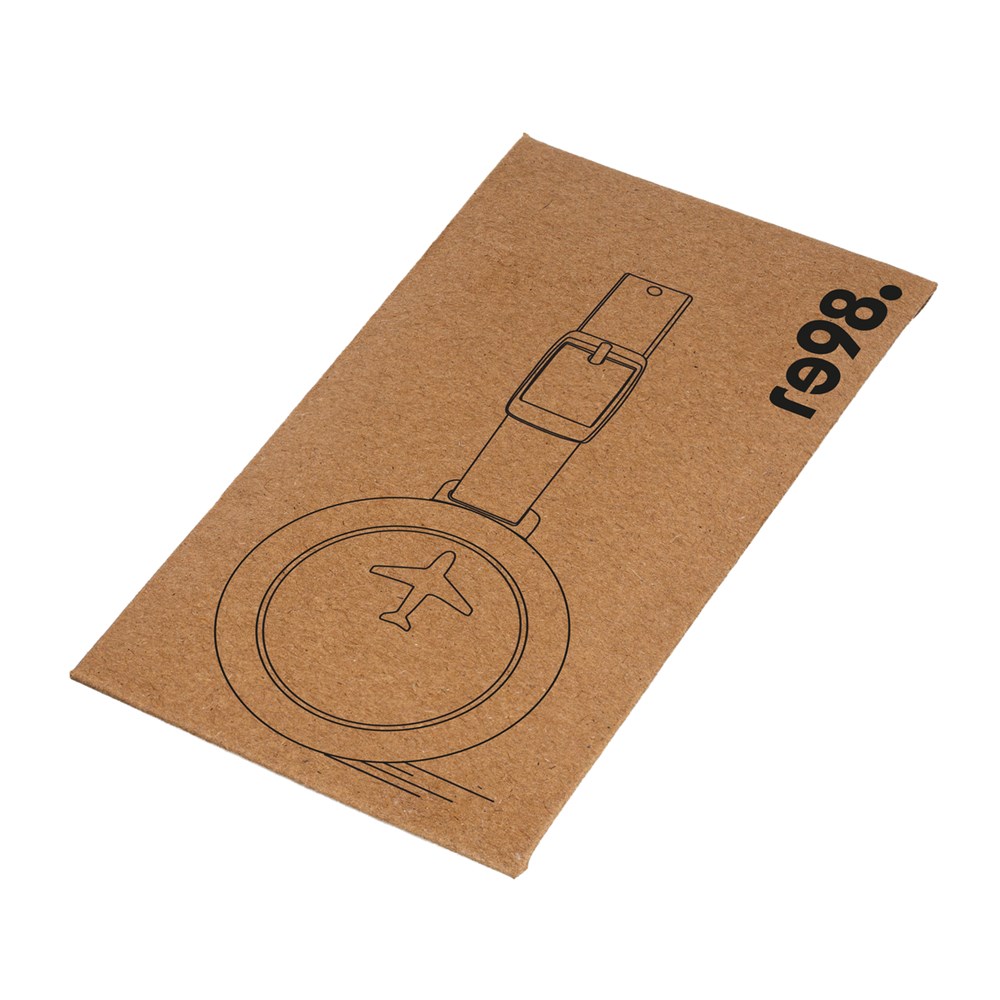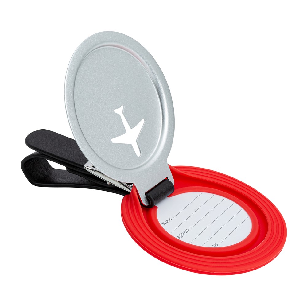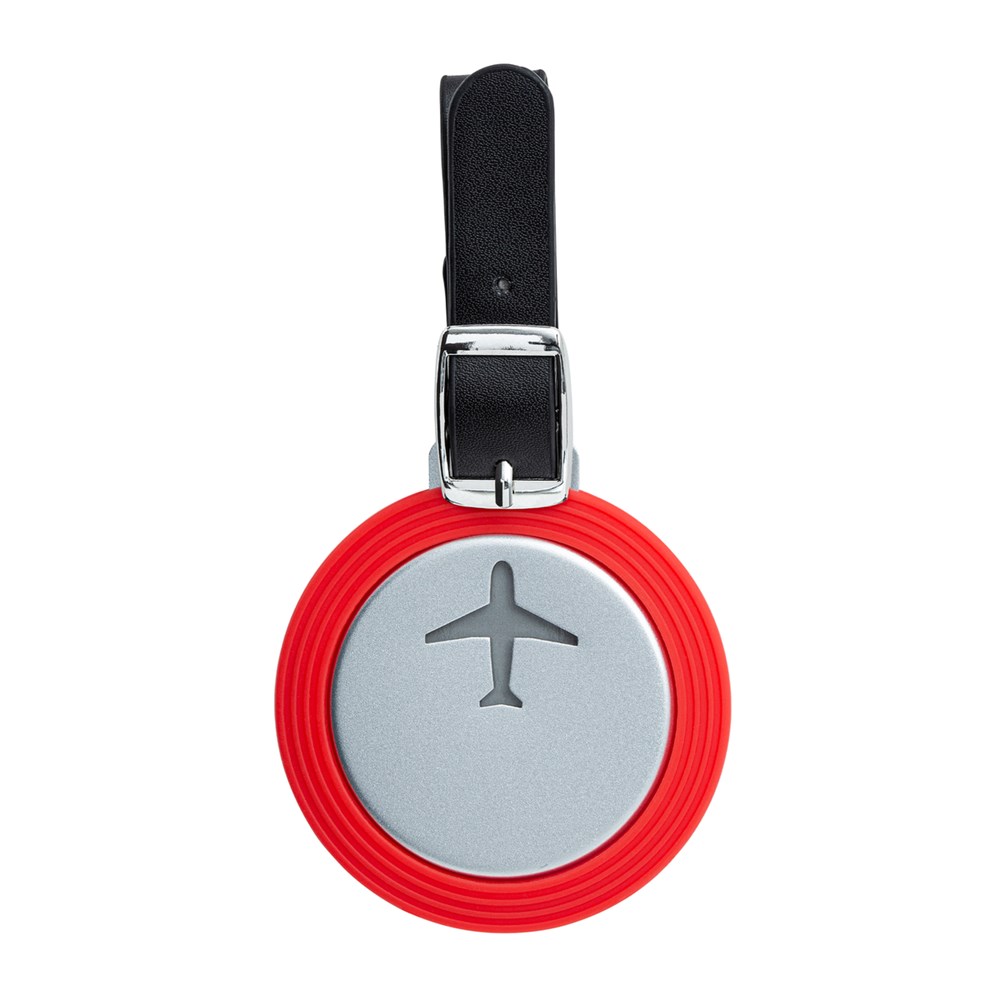 Dit REFLECTS® ontwerp is een onmisbare metgezel tijdens elke reis. De bagagelabel valt op door het moderne ontwerp en trendy kleuren, van subtiel zwart-zwart tot levendig rood-zilver. De aluminium plaat heeft een gestanst vliegtuigmotief aan de voorkant en past veilig in het omringende silicone. Tussen de siliconen cover en de aluminium plaat zit een papieren inlegvel voor naam, adres en telefoonnummer, waardoor persoonlijke gegevens verborgen blijven. De kunstleren band met metalen gesp zorgt voor een veilige bevestiging aan koffers of rugzakken.