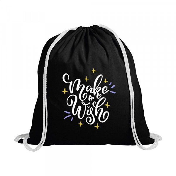 Rugzak van 100% katoen (120 g/m²). Met aanrijgkoorden. Inhoud ca. 8 liter.