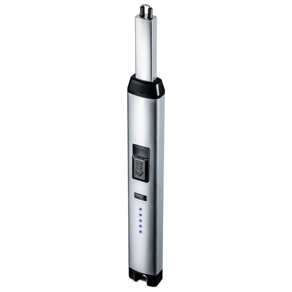 Trotseert zelfs de wind: de elektronische aansteker werkt niet met een gloeispiraal maar met een lichtboog. Heeft geen brandstof nodig, wordt gevoed door een oplaadbare batterij. In- en uitschakelen door middel van een schakelaar. Schakelt automatisch uit na ca 7 seconden. De batterij werkt ca 70 ontstekingen. Logo's hebben een prominente plek op het royale druk/laser oppervlak.