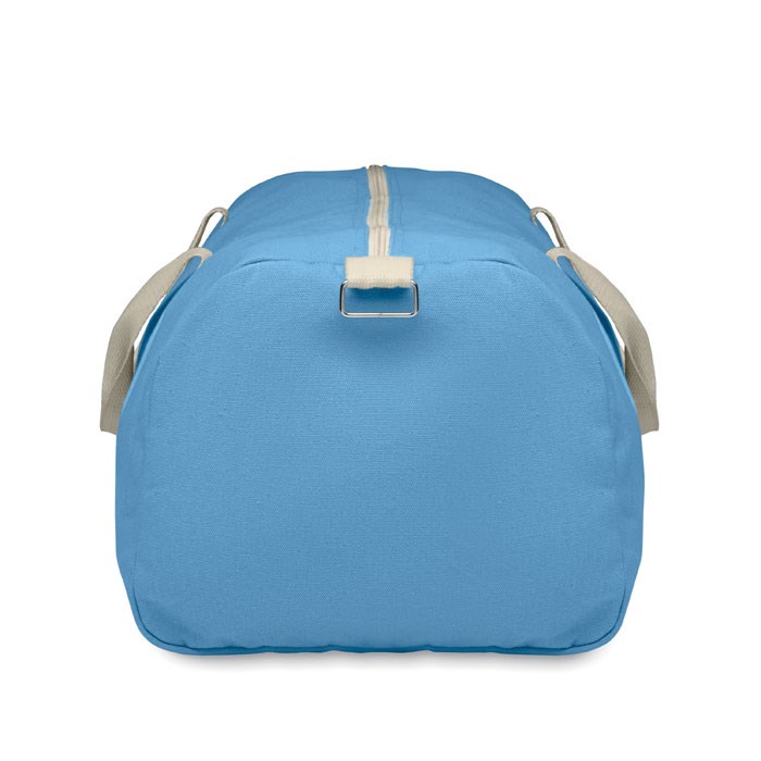 Reis-/ sporttas van gerecyclede stoffen (60% gerecycled katoen, 40% gerecycled polyester) in 320gr/m² met hengsels van natuurlijk katoen en een verstelbare en afneembare schouderriem.