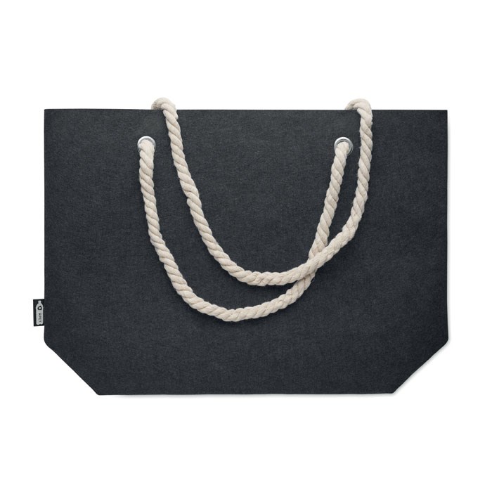 Strandtas of boodschappentas van RPET-vilt met koordhengsel. Viltdikte: 2 mm.meer