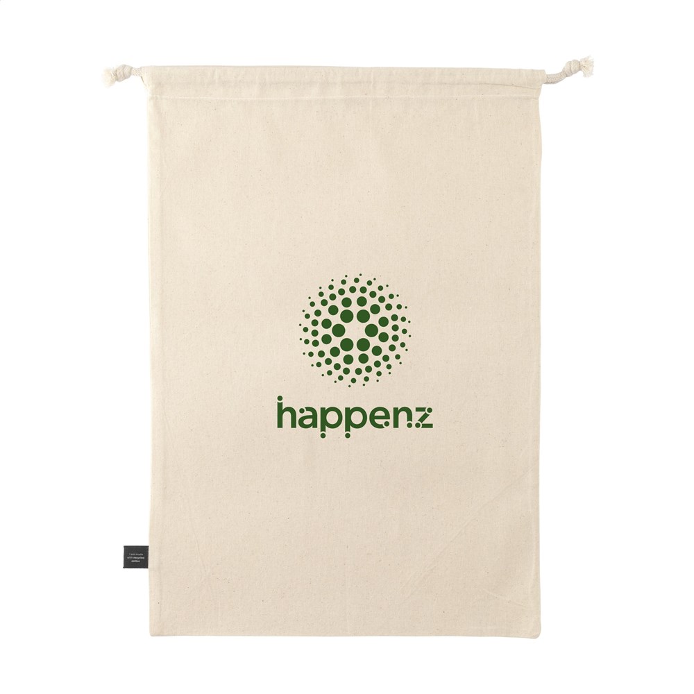 Cadeauzakje van 100% gerecycled katoen (150 g/m²). Met aanrijgkoorden van gerecycled polyester en gerecycled katoen. Origineel als geschenkverpakking en geschikt om spullen in te bewaren. GRS-gecertificeerd. Inhoud ca. 4 liter.