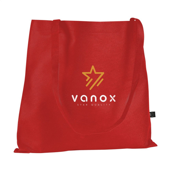 inkeltas van gerecycled nonwoven polyester (80 g/m²). Met lange hengsels. Sterk en superlicht. GRS-gecertificeerd. Totaal gerecycled materiaal: 97%. Inhoud ca. 8 liter.