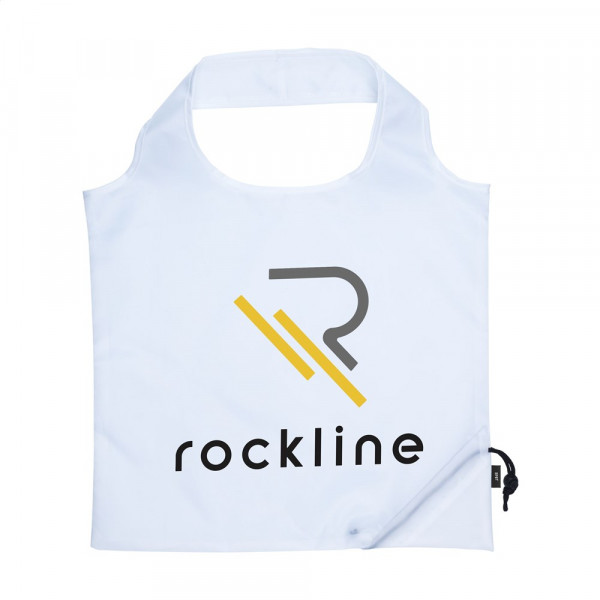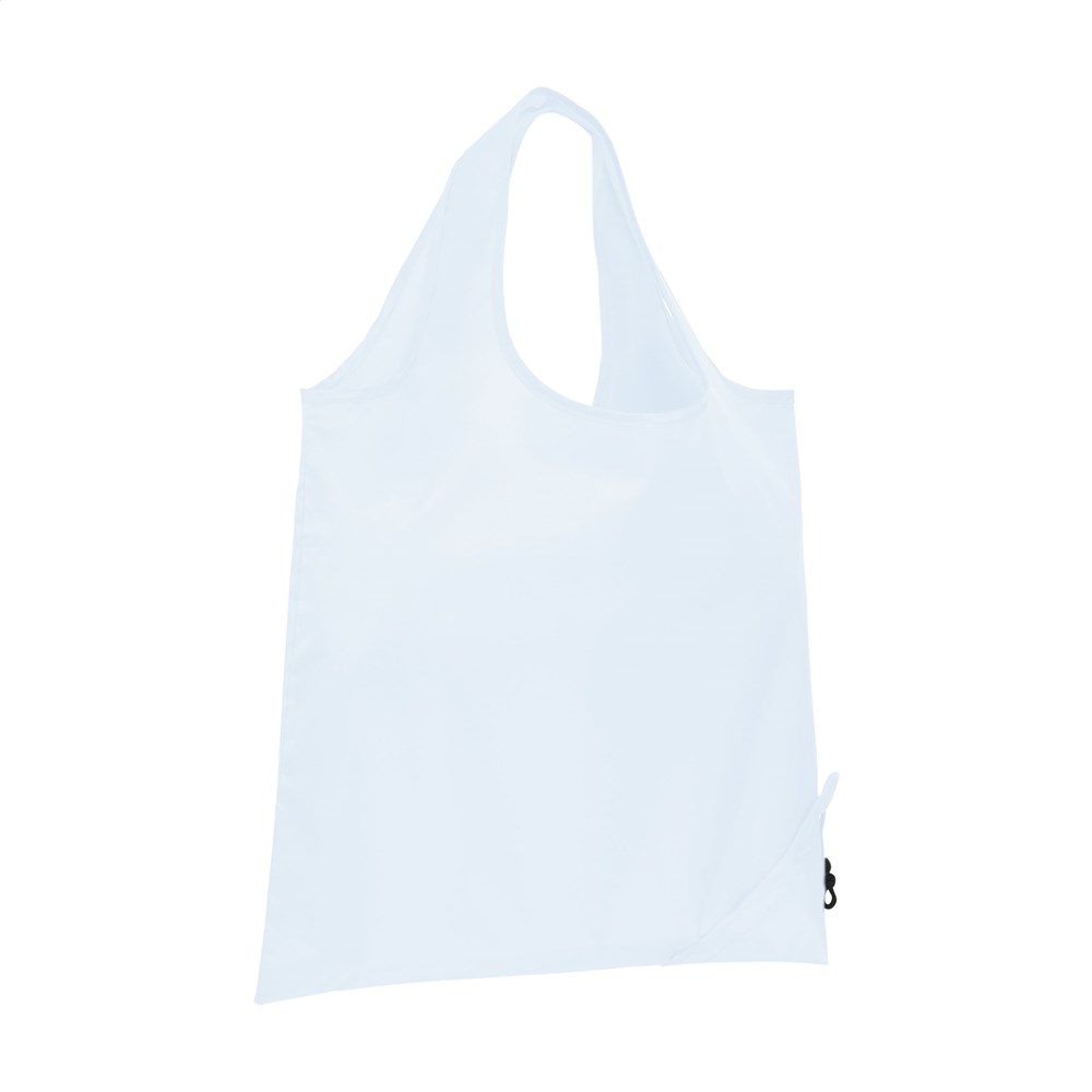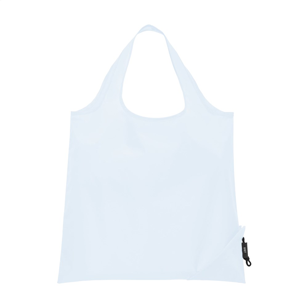 Opvouwbare, royale winkeltas van RPET polyester, gemaakt van gerecyclede PET-flessen. Met dubbele draaglus. In een handomdraai van pouch naar tas en andersom. Afm. opgevouwen 8 x 8 x 6 cm. GRS-gecertificeerd. Totaal gerecycled materiaal: 90%. Inhoud ca. 8 liter.