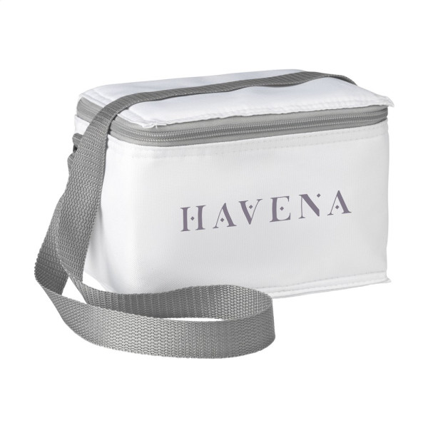 Koeltasje van 600D RPET polyester. Geschikt voor 6 blikjes drank. Met draagriem....meer