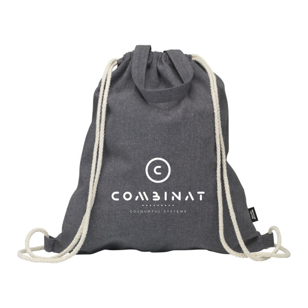 Rugzak van 80% gerecycled, gemêleerd katoen en 20% gerecycled en polyester (180 g/m²). Met aanrijgkoorden en handige draaglussen. GRS-gecertificeerd. Totaal gereycled materiaal: 100%. Inhoud ca. 8 liter. Dit katoen is gerecycled. Hierdoor kan de kleur per product variëren.