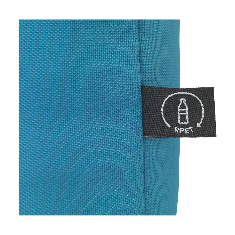 Koeltas van 600D RPET polyester. Geschikt voor flessen tot 1,5 liter. Met verstelbare draagriem. GRS-gecertificeerd. Totaal gerecycled materiaal: 51%.