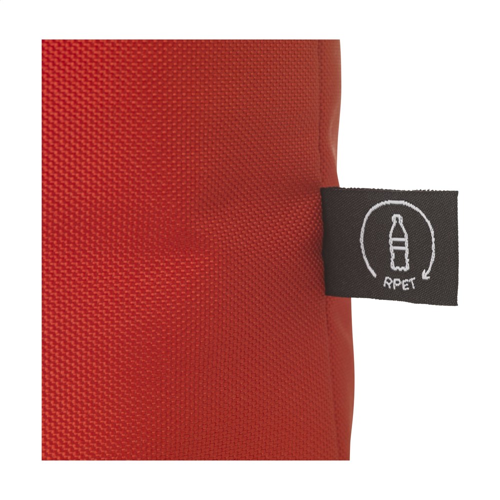 Koeltas van 600D RPET polyester. Geschikt voor flessen tot 1,5 liter. Met verstelbare draagriem. GRS-gecertificeerd. Totaal gerecycled materiaal: 51%.