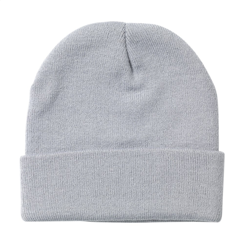 Gebreide muts met omslag. Van 100% RPET polyester. Populair, lekker warm en goede kwaliteit. One...meer