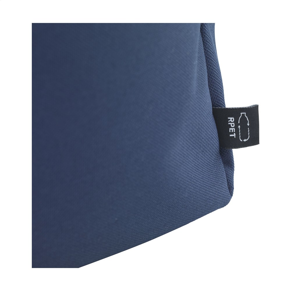 Rugzak van stevig 600D RPET polyester. Voorzien van een royaal compartiment met een stevige ritssluiting en een foam beschermvak voor het veilig vervoeren van een laptop tot 15,6 inch. Met een extra ritsvak aan de voorzijde en een handige draaglus. De verstelbare schouderriemen en rugzijde zijn voorzien van foam voor extra draagcomfort. De rugzijde is afgewerkt met mesh stof. GRS-gecertificeerd. Totaal gerecycled materiaal: 98%. Inhoud ca. 15 liter.